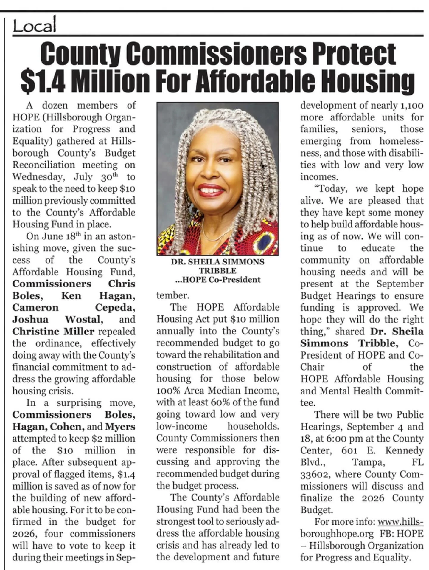 HOPE is a multi-issue, grassroots, community organization consisting of 29 multicultural and interfaith member congregations throughout Hillsborough County, Florida.
